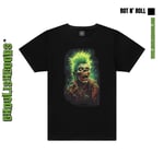 Get ready to mosh in the graveyard with our "Rot N' Roll" tee, featuring a decaying punk zombie who's still got the beat!